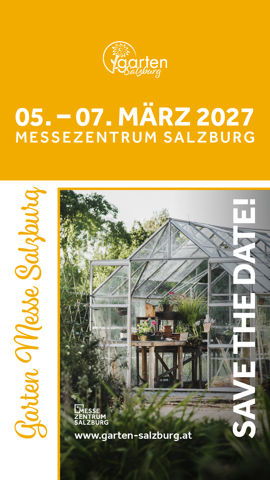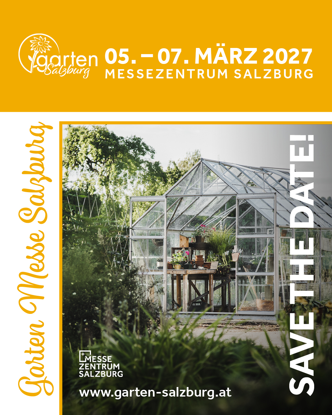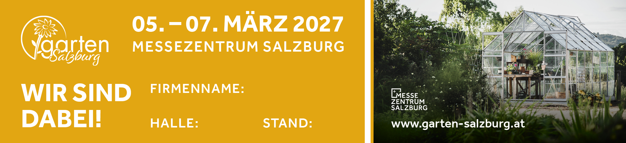 [Translate to English:] Garten Messe 2027 Banner "Wir sind dabei!"