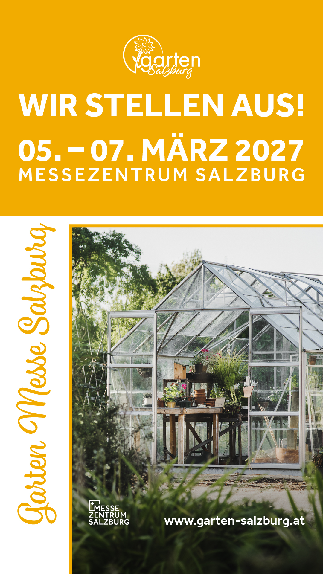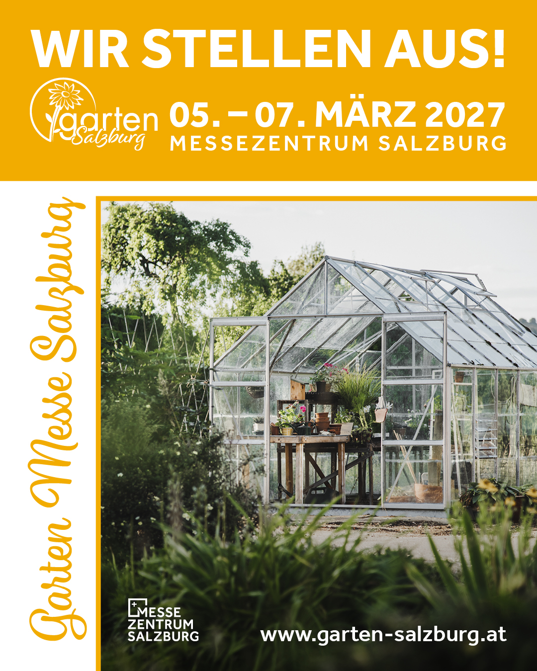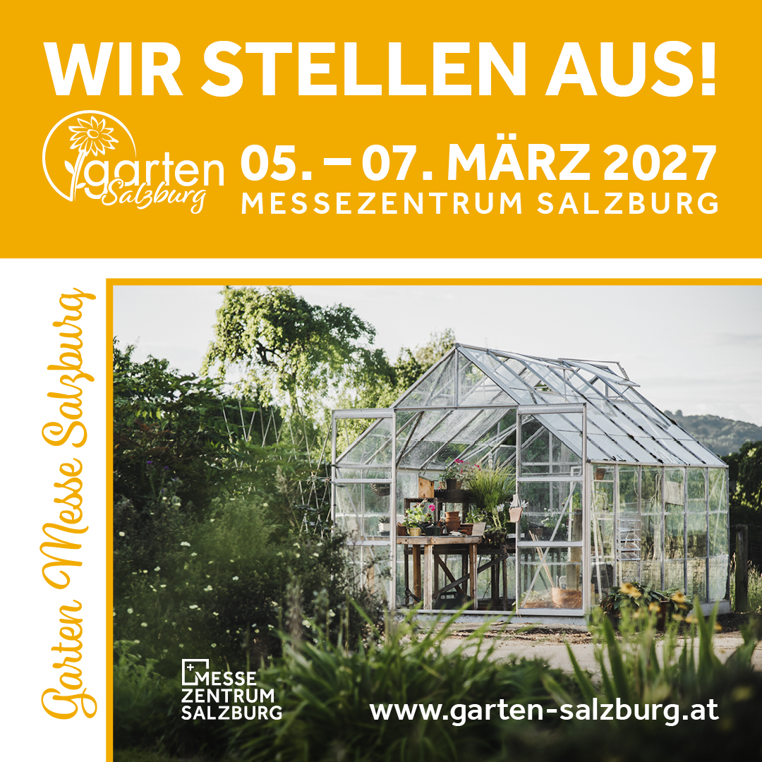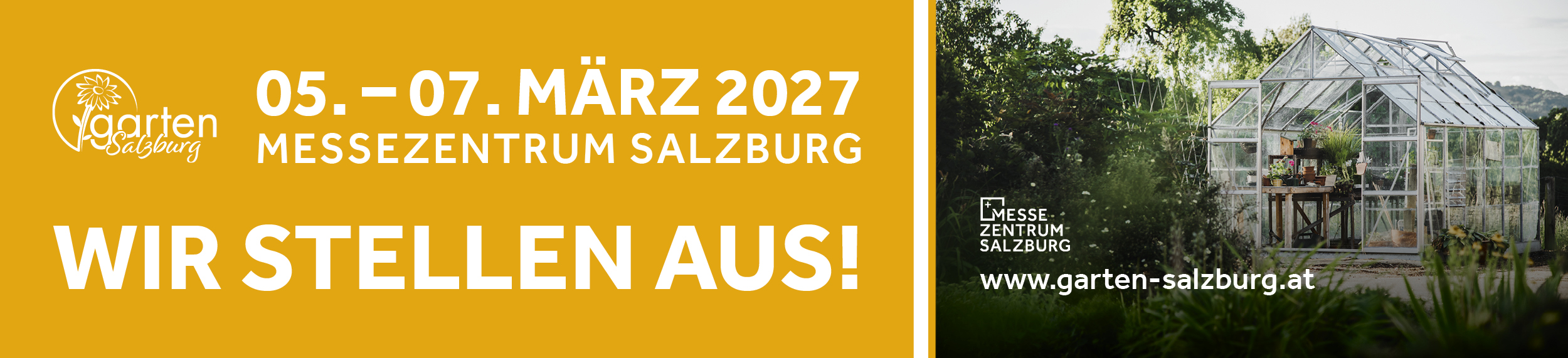 [Translate to English:] Garten Messe 2027 Banner "Wir stellen aus!"